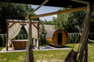 Ostoja Rekownica to świetna propozycja na wieczór panieński nad jeziorem – z bezpośrednim zejściem do wody i widokiem, który zapiera dech. Położona wśród kaszubskiej przyrody, oferuje SUP-y, kajaki, rowery i relaksującą strefę SPA z sauną i balią. Co więcej, wieczory można spędzić pod gwiazdami z projektorem nieba lub przed ekranem z Amazon Prime.