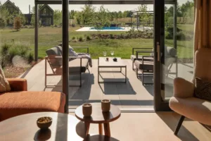 Dwa podgrzewane baseny, altana grillowa i leżaki pozwalają cieszyć się każdą chwilą, a fińska sauna w wybranych domach dodaje wieczorowi wyjątkowego charakteru. Ponadto lokalizacja na styku Warmii i Mazur sprawia, że można tu odpocząć w ciszy lub ruszyć na żeglarską przygodę.