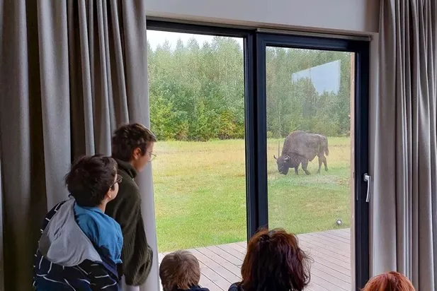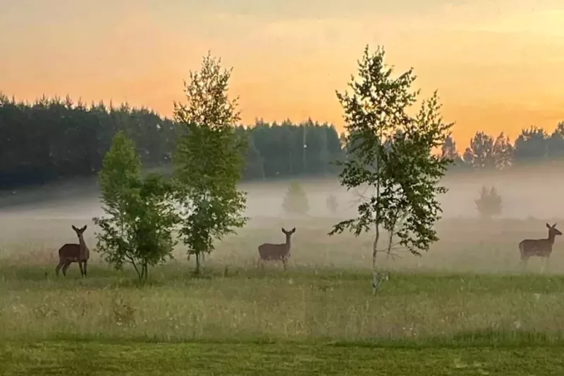 Tatanka – Dom w Puszczy to wyjątkowe miejsce na wieczór panieński w sercu dzikiej przyrody, u wrót prastarej Puszczy Białowieskiej. Położony w cichej części Białowieży, z widokiem na łąki i zagajniki, oferuje bliskość Natury w jej najpiękniejszej formie – z okien można wypatrywać saren, lisów, a nawet orlika krzykliwego. 🌲 Co więcej, dwa modrzewiowe tarasy i duży salon z kominkiem tworzą przestrzeń idealną do wspólnego odpoczynku.