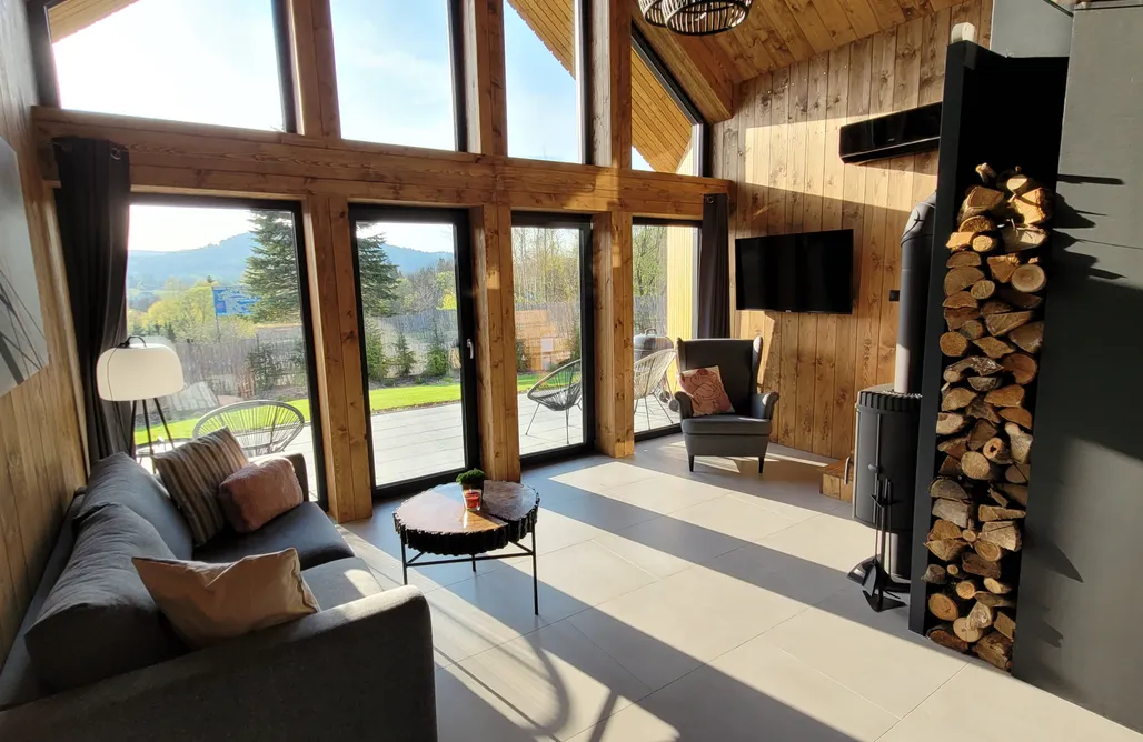 Our place is not yet fully discovered, a picturesque village in the Low Beskid near the Polish-Slovakian border - Wysowa-Zdroj. In this beautiful area we put at your disposal two modern, year-round cottages, each of 55m with a mezzanine. They are designed for 4 people and are completely independent. Cottages Wimer I and Wimer II. So that you do not have to face the choice which option to choose, we have created cottages that are "almost" identical, i.e. they are their mirror image. They differ only in accessories, more precisely, their color. They are fully equipped, air-conditioned with a fireplace, and the glazing we used in our cottages allows you to enjoy the beautiful view of the mountains. We want our cottages to be an oasis of peace and comfort for our customers - "Collect moments, not things."
