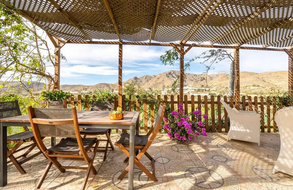 Disfruta de una estancia relajante y tranquila en nuestra finca privada andaluza, donde el sol, los árboles y la naturaleza te invitan a desconectar de todo. Relájate con un buen libro bajo la sombra de un árbol o dirígete a las impresionantes playas del Mediterráneo y el Parque Natural del Cabo de Gata para disfrutar de su belleza. Si buscas un poco más de actividad, las montañas y carreteras cercanas ofrecen excelentes oportunidades para el ciclismo, el senderismo y el running. Explora el impresionante paisaje andaluz, visitando el Crater del Hoyazo o el Embalse de Isabel II, antes de regresar a la tranquilidad de la piscina y los grillos. Nuestros pequeños cortijos se encuentran alejados de los vecinos, con porches privados que ofrecen vistas panorámicas de Nijar y la sierra. Cada uno tiene su propio baño y aire acondicionado, y la piscina compartida se encuentra a poca distancia. Ven a descubrir el encanto del campo del sur de España en su mejor momento, y disfruta de una estancia tranquila y relajante en nuestros acogedores cortijos. ¡Te esperamos con los brazos abiertos!