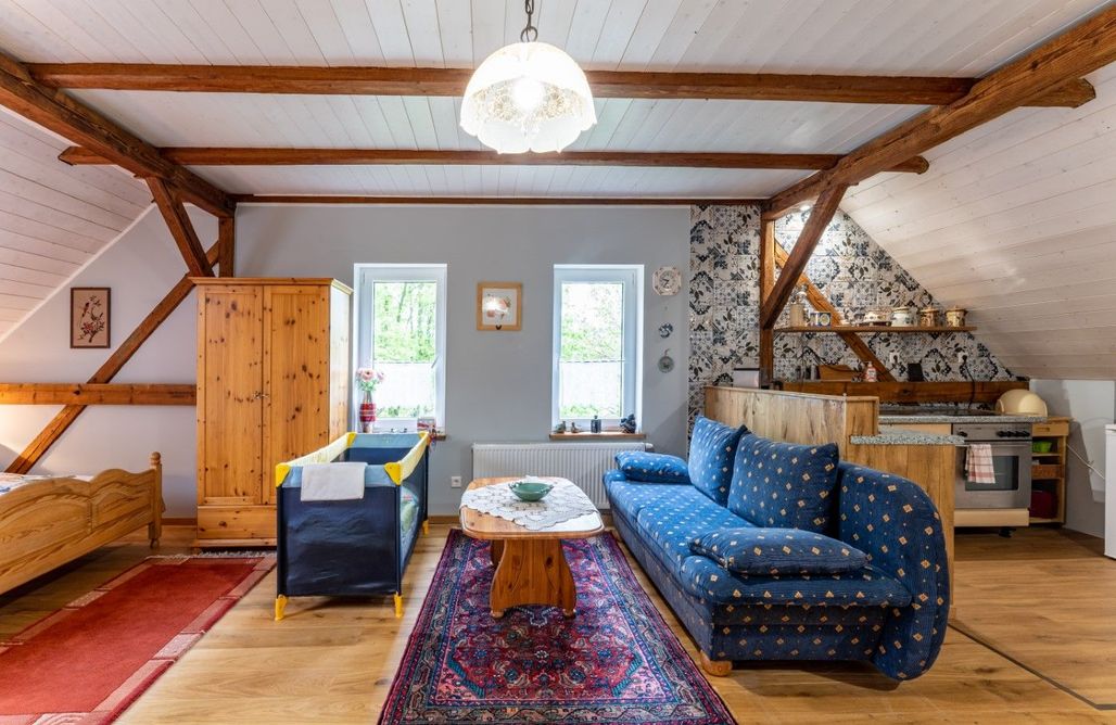 Ziemia Obiecana to urokliwy obiekt noclegowy położony na 2.5-hektarowej działce, usytuowany na pagórku otoczonym lasem, w malowniczym i ustronnym Nielestnie. Ten przytulny dom wakacyjny oferuje 4 komfortowe kwatery, każda z aneksem kuchennym, łazienką i sypialnią. Idealny dla rodzin lub grupy przyjaciół, obiekt ten zapewnia spokojne i relaksujące otoczenie, z dala od miejskiego zgiełku. Goście mogą cieszyć się pięknymi widokami na okoliczną przyrodę, spędzać czas na świeżym powietrzu, wędrować po pobliskim lesie znajdującym się na terenie obiektu lub po prostu odpoczywać na tarasie, delektując się ciszą i spokojem. Ziemia Obiecana to miejsce, gdzie można odciąć się od codziennych trosk i nacieszyć się harmonią natury. Zależy nam na Twoim komforcie i zadowoleniu, dlatego stworzyliśmy apartamenty, w których oferujemy dużo miejsca do relaksu i odpoczynku. Bez względu na to, czy podróżujesz z rodziną, grupą przyjaciół czy w pojedynkę, nasze przestronne apartamenty gwarantują, że poczujesz się jak w domu. Znajdziesz tu miejsce do spędzania czasu razem i jednocześnie możesz cieszyć się prywatnością swojego własnego mieszkania. Na tarasie znajdziecie duży stół, przy którym można usiąść i nacieszyć się naturą i urokiem ogrodu. W kąciku grillowym znajduje się grill gazowy, idealny do przygotowywania pysznych posiłków na świeżym powietrzu. Możecie również zrelaksować się przy stoliku kawowym w głębi naszego urokliwego ogrodu, w którym również wasze pociechy znajdą coś dla siebie. Dla dzieci dostępne są huśtawki, zjeżdżalnie i duża paiskownica z zabawkami. Dodatkowo na parterze usytuowana jest ogólnodostępna toaleta dla wygody naszych gości. W naszym wyjątkowym kącie wypoczynku i zabawy znajdziecie wszystko, czego potrzebujecie, by spędzić czas w przyjemny sposób z rodziną i przyjaciółmi. Ogromna skórzana sofa i stół zapewnią komfortowy relaks i przestrzeń do wspólnego spotkania. Dla najmłodszych przygotowaliśmy stolik i zabawki, aby mogli się bawić i cieszyć swoim pobytem. Dodatkowo, dla miłośników gier udostępniamy różnorodne gry planszowe, które umilą wieczory lub gorszą aurę. Zapewniamy przestrzeń, w której możecie spędzić niezapomniane chwile w towarzystwie bliskich i znaleźć rozrywkę dla każdego. Goście mogą skorzystać z ogólnodostępnej pralki. Nie przyjmujemy kotów ze względu na alergię!