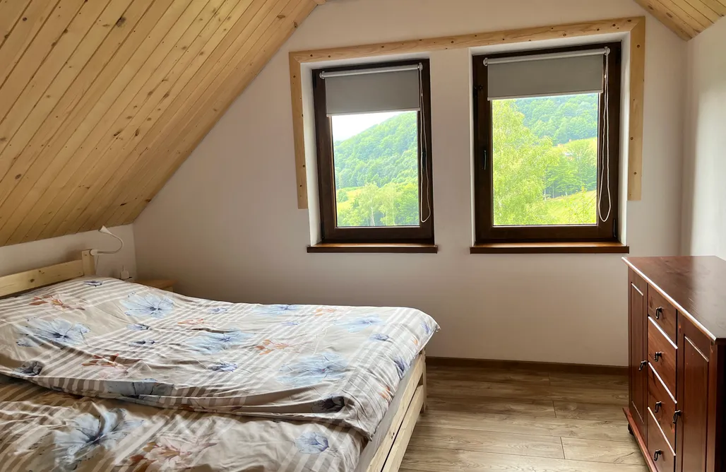 Zapraszamy do nowego, całorocznego domku położonego w malowniczej miejscowości Wołkowyja, przy Małej Pętli Bieszczadzkiej. Brzozowe Wzgórze to idealne miejsce na wypoczynek z dala od zgiełku – znajduje się na wzgórzu, z którego rozpościera się zachwycający widok na Jezioro Solińskie, okoliczne lasy i bieszczadzkie wzniesienia. Domek został urządzony z myślą o komforcie i relaksie naszych Gości. Na piętrze znajdują się dwie przytulne sypialnie: • w jednej z nich duże łóżko małżeńskie o szerokości 180 cm, • w drugiej – łóżko podwójne 160 cm oraz dodatkowe pojedyncze łóżko o szerokości 90 cm. Na parterze czeka na Państwa przestronny salon z dużym telewizorem, w pełni wyposażona kuchnia (ze zmywarką), a także funkcjonalna łazienka. Dla jeszcze większej wygody domek posiada ogrzewanie i pralkę, dzięki czemu sprawdzi się doskonale o każdej porze roku. Na zewnątrz przygotowaliśmy dla Państwa zadaszony taras z leżakami, gdzie można delektować się poranną kawą lub podziwiać zachody słońca, oraz miejsce na grilla, idealne na wieczorne spotkania przy wspólnym posiłku. Brzozowe Wzgórze to miejsce stworzone z myślą o tych, którzy szukają ciszy, spokoju i bliskości natury. To również świetna baza wypadowa do odkrywania uroków Bieszczad – pieszych wędrówek, rowerowych wycieczek czy rejsów po Solinie. Zachęcamy do rezerwacji i spędzenia niezapomnianych chwil w sercu Bieszczad!