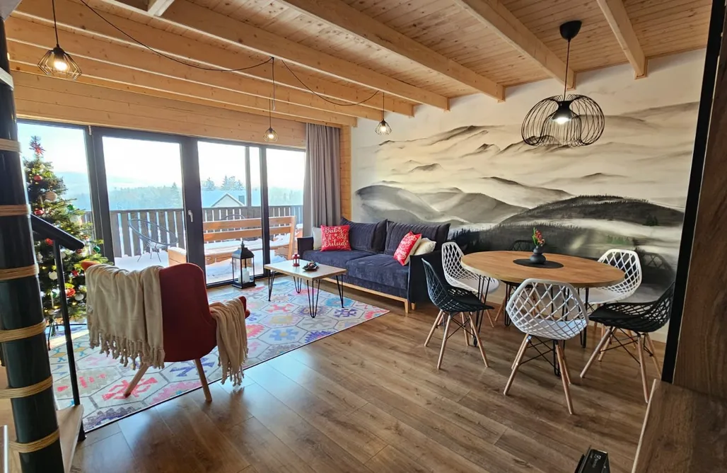 Osada Gilówka to nowe, wyjątkowe miejsce w Rabce Zdrój. Trzy, komfortowe, w pełni wyposażone domki położone na dużej, ogrodzonej działce (3200 m2) z jednej strony otoczonej lasem, a z drugiej z pięknym widokiem na Gorce i Tatry. Każdy domek został przygotowany dla 8 osób, składa się z salonu połączonego z kuchnią, dwóch, oddzielnych sypialni, łazienki oraz przestronnego, widokowego tarasu, na którym znajduje się grill i całoroczna balia z funkcją jacuzzi opalana drewnem. W salonie jest sofa dwuosobowa rozkładana, a w każdej sypialni łóżko małżeńskie i dwa, pojedyncze łóżka. Na wyposażeniu znajduje się m.in. smart TV (50 cali), lodówka, zamrażarka, mikrofalówka, zmywarka, płyta ceramiczna, czajnik, odkurzacz, żelazko i deska do prasowania, pościel, ręczniki. Dla najmłodszych przygotowano plac zabaw z dwupoziomowym domkiem, huśtawkami, zjeżdżalniami i trampoliną. Do dyspozycji parking i wi-fi. W niedalekiej odległości zlokalizowany jest Rabkoland, Park Zdrojowy z licznymi atrakcjami oraz szlaki turystyczne i 4 schroniska górskie.